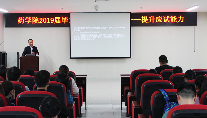 3月29日晚,公司在知行楼B楼1604会议室举行毕业生就业辅导之提升应试能力专题讲座。药分教研室陈纭老师作专题辅导。