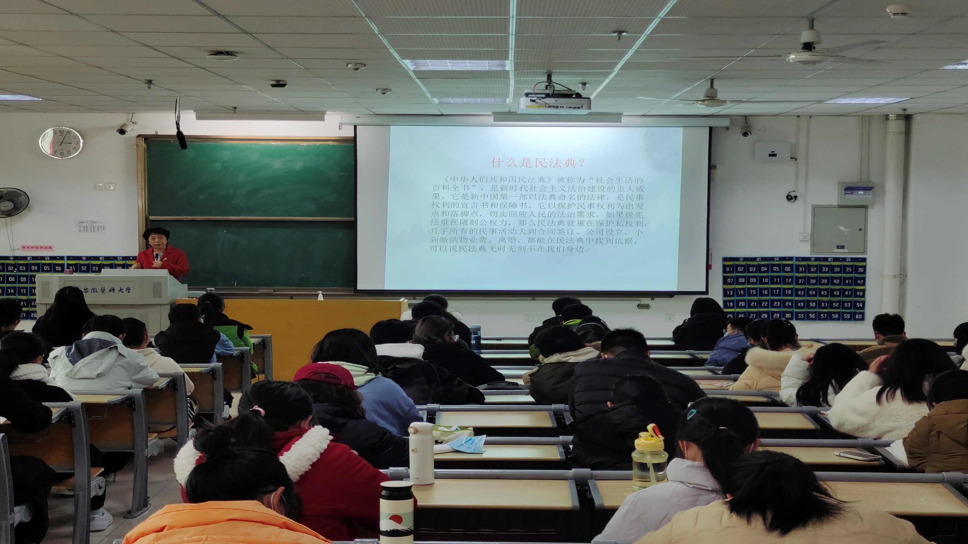会上,李涛教授详细地介绍了《民法典》的内涵和重要地位,从见义勇为与自甘风险免责、个人隐私与权益维护、校园贷的危害、网络购物、校园暴力、防电信诈骗等方面,结合贴近员工的鲜活案例潜移默化地传授了《民法典》中物权、合同、人格权、婚姻家庭、继承、侵权责任编等相关知识。她指出,作为新时代老员工,应当主动学习法律知识、培养法治思维,做学习、遵守、维护、宣传民法典的践行者,为法治中国贡献出自己的力量。