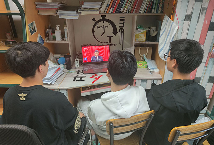7003全讯入口登录师生集中收听收看党的二十大开幕盛况